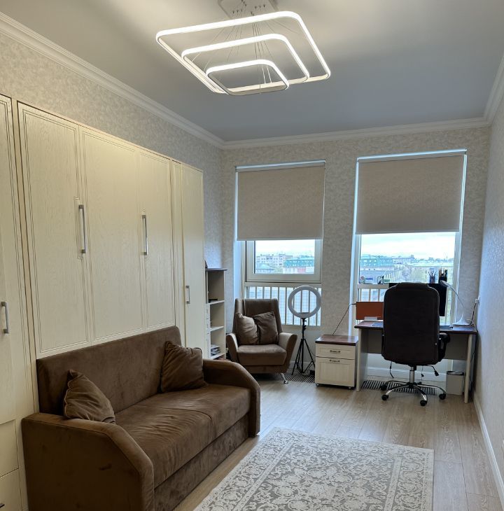 Сдается на длительный срок просторная 3-х комнатная квартира в доме бизнес-класса. Три изолированные комнаты. 18 кв+гардеробная, 20 кв и 15 кв.детская и просторная кухня гостиная 40 кв. Кухня оборудована современной бытовой техникой: 2 встроенных холодильника, посудомойка на 60 см., духовка, встроенная микроволновая печь. Два санузла, в одном ванна, во втором душ и сауна с каменкой. Район с развитой инфраструктурой: метро 10 мин пешком, автобусные остановки, школы, садики, кружки и развивающие занятия для детей, рядом бассейн и спортивная школа.