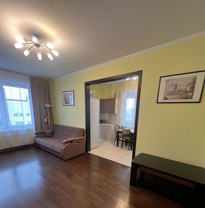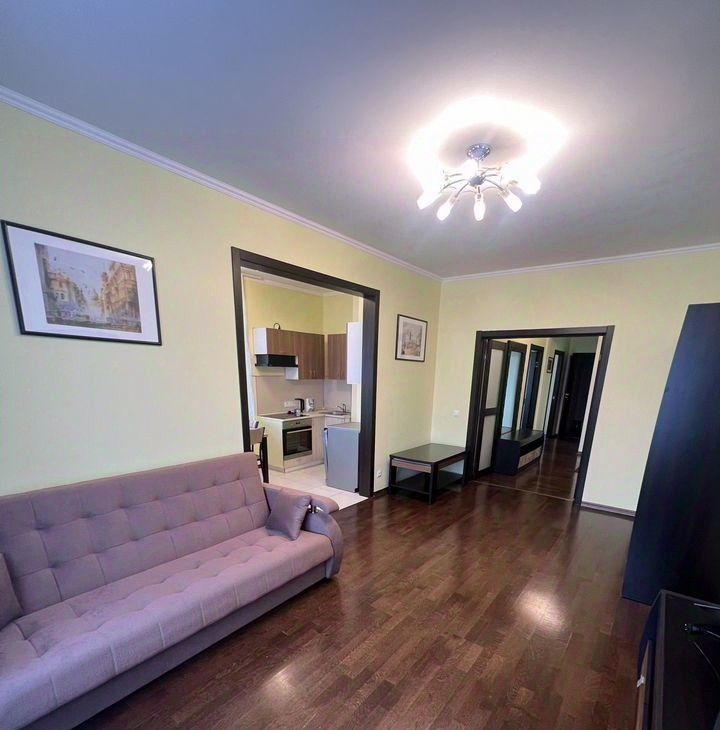 Сдаётся в аренду уютная двухкомнатная квартира с евроремонтом, площадью 77 кв. м, расположенная на 8-м этаже современного 10-этажного дома, построенного в 2015 году. Высокие потолки 2.8 метра создают ощущение простора и света. До ближайшего метро всего 15 минут пешком, что удобно для ежедневных поездок.