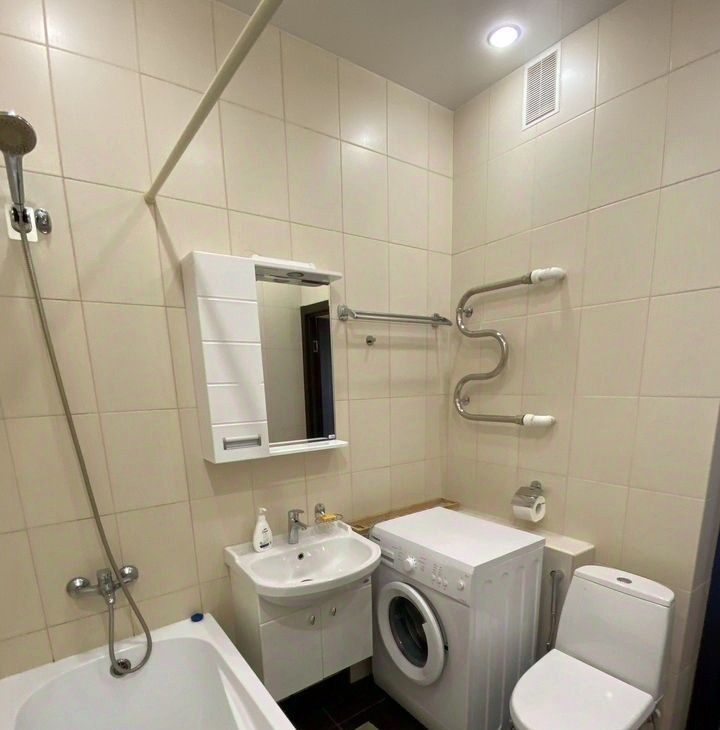 В квартире есть всё необходимое для комфортного проживания. Просторная гостиная с современным дизайном и вместительный шкаф. Кухня оборудована всей необходимой техникой: холодильник, посудомоечная машина, телевизор и стиральная машина. Санузел совмещённый, с современными сантехническими решениями. В квартире проведён интернет, поэтому можно легко работать удалённо или отдыхать за просмотром любимых сериалов.