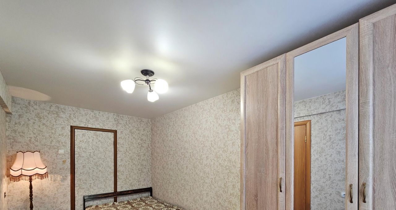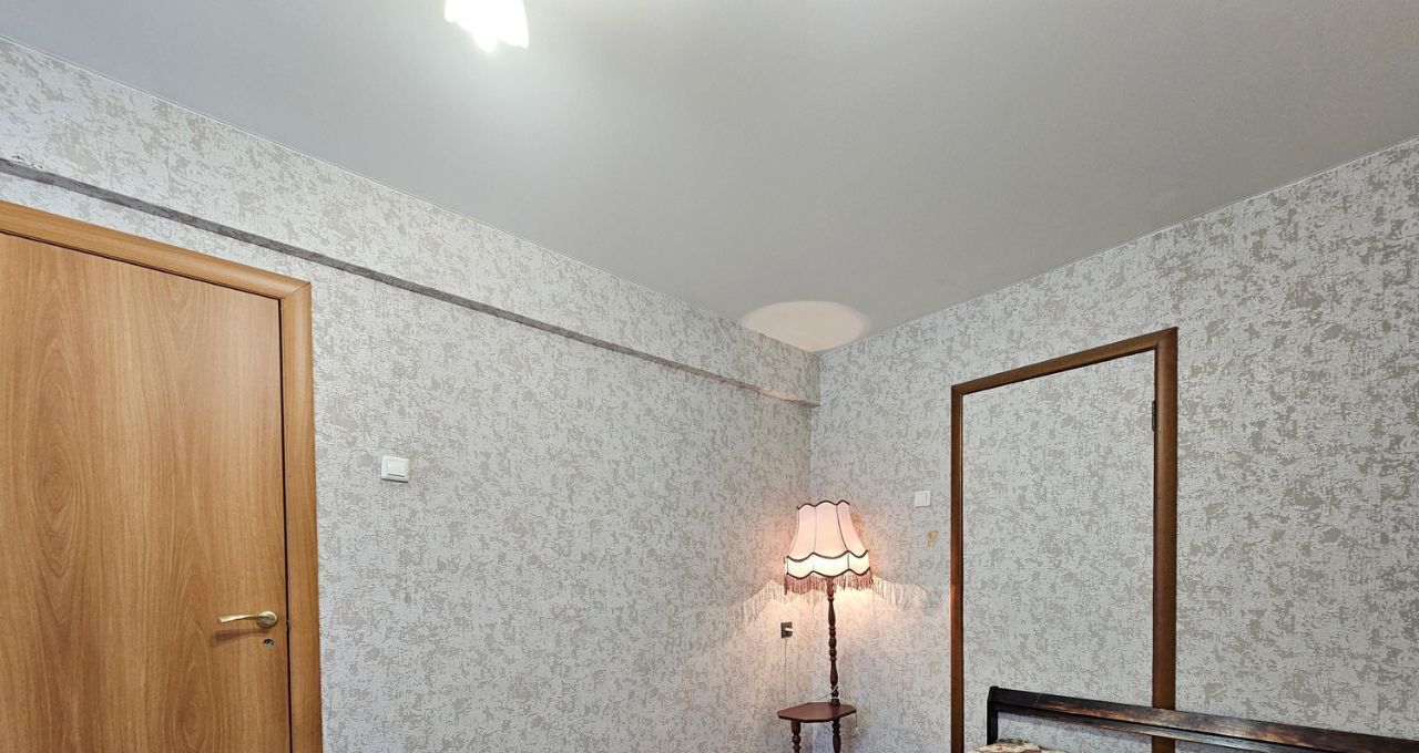 В 12 м. комнате двухспальная кровать, трехстворчатый шкаф, журнальный столик, торшер.