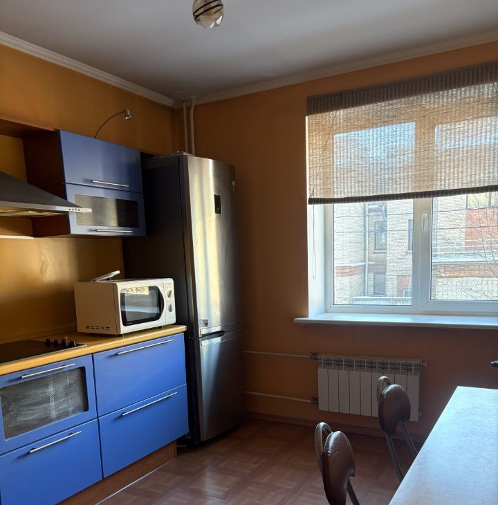 В квартире есть все необходимое для комфортного проживания. Косметический ремонт, мебель в комнате и на кухне, а также вся необходимая техника: холодильник, микроволновка, телевизор, стиральная машина. Окна выходят как на улицу, так и во двор, что обеспечивает хорошее естественное освещение.
