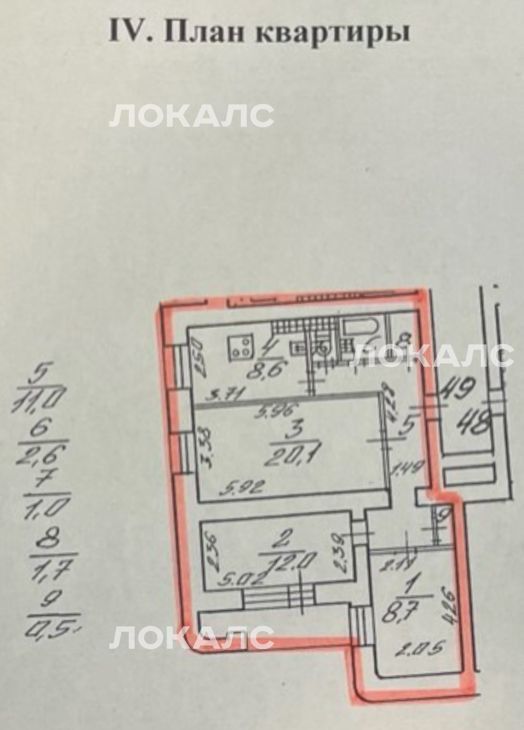 Квартира: Три изолированные комнаты и одна лоджия. Комнаты по 20 кв.м, 12 кв.м, 8.7 кв.м. Кухня 8.6 кв.м. Лоджия 5.4 кв.м. Перепланировок нет.