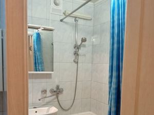 Раздельный санузел: отдельно унитаз и душевая, стиральная машина.
