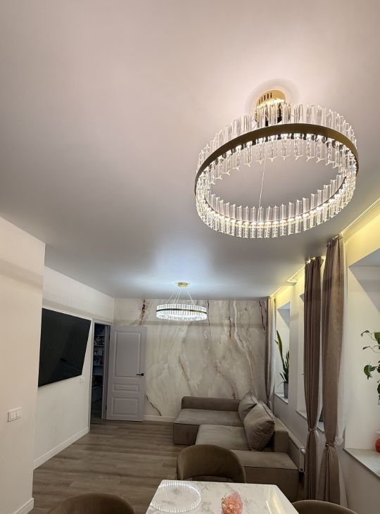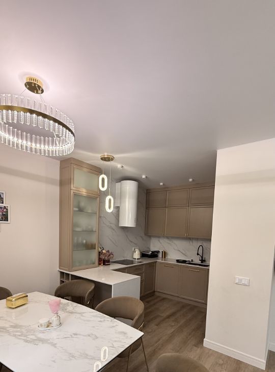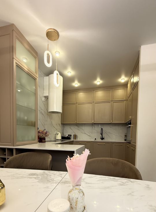 Большая кухня гостиная с 4-мя окнами, функционально выделенная зона кухни для готовки,столешница и подоконники из натурального камня, качественная техника и гарнитур из дерева. Сан.узлы с тёплыми полами, один при входе в квартиру и второй просторный у мастер-спальни. Из неё выход на утеплённую лоджию 7 метров (заменено полностью остекление и теплые полы), где классно наблюдать за закатами и салютом.