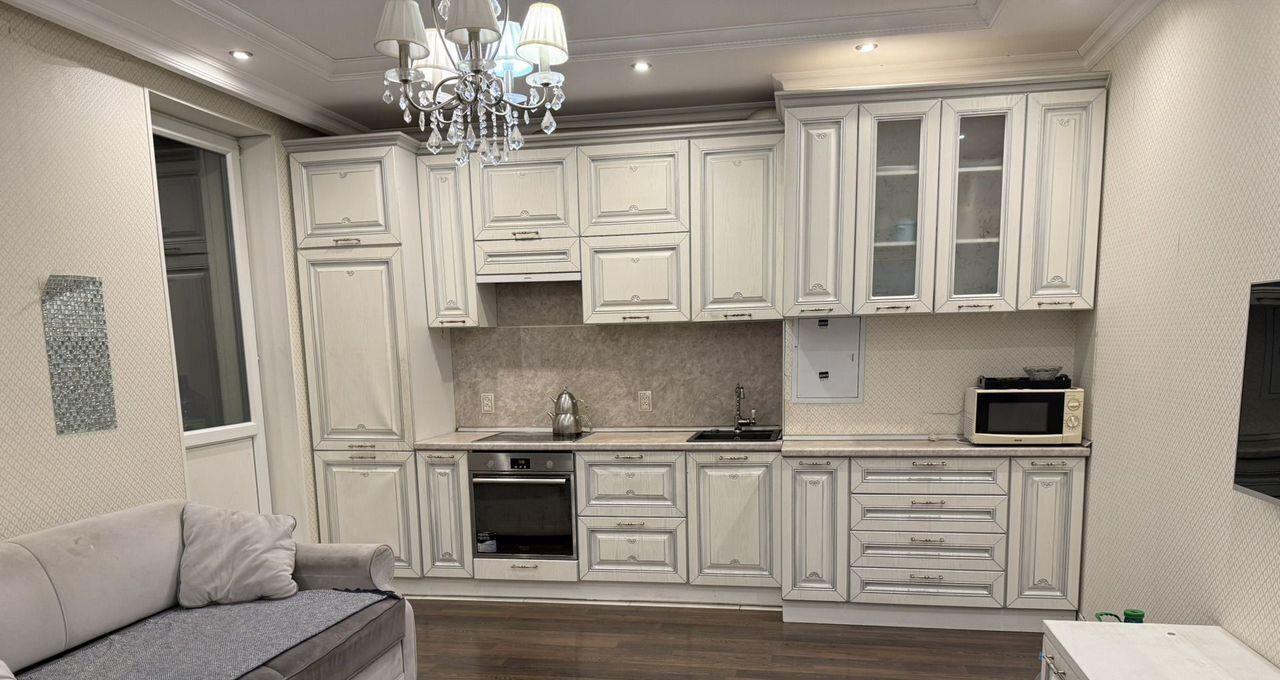 В квартире сделан дизайнерский ремонт, который подчёркивает её современный стиль. В вашем распоряжении вся необходимая техника: холодильник, телевизор, стиральная машина и т.д. Комнаты обставлены стильной мебелью, а планировка продумана для максимального комфорта. Два санузла в отличном состоянии.