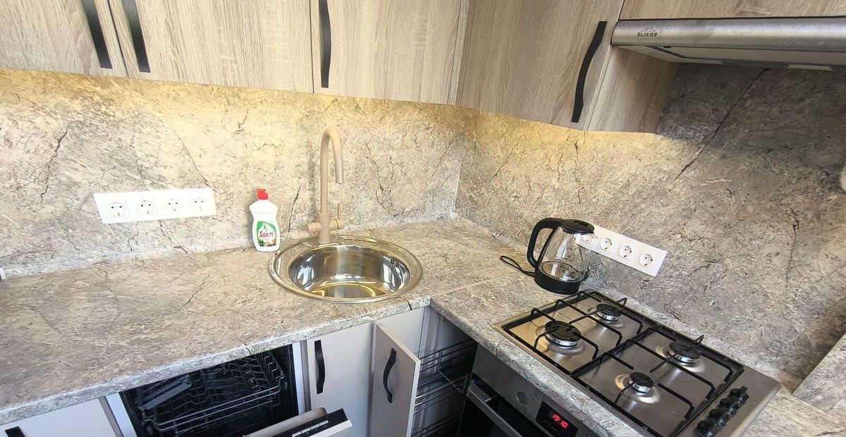 Новая кухня; трёхкамерные стеклопакеты (тихо и тепло, можно забыть о славе квартиры в "корабле" как холодной - в зимний период); подобраные со вкусом обои и ламинат; дизайнерское освещение; барная стойка в спальне (звучит необычно — выглядит классно)