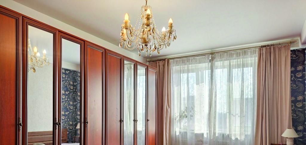 В спальне два окна (!), двуспальная кровать, две прикроватных тумбы, комод, шкаф.