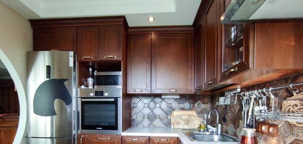 Вся техника: стиральная машина, посудомойка, индукционная варочная панель, духовой шкаф, микроволновка, холодильник, чайник.