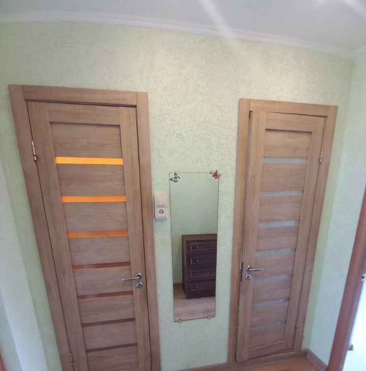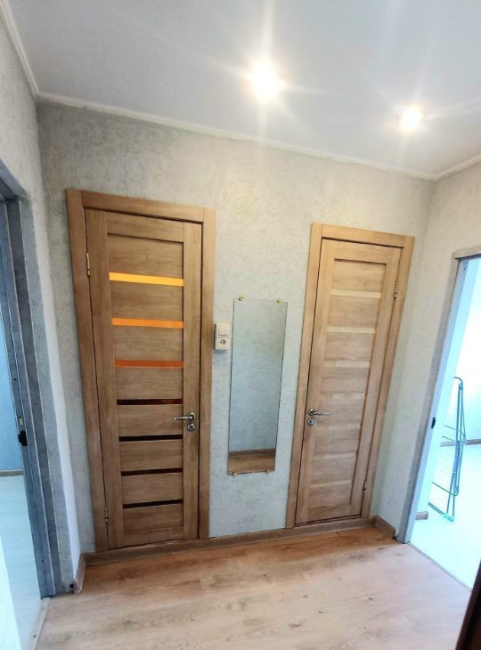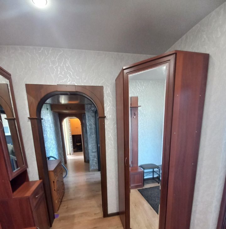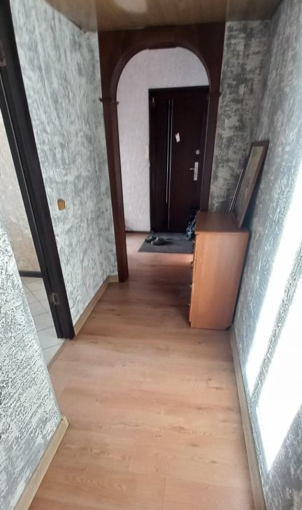Полы в комнатах и коридорах- ламинат, на кухне, в туалете и ванной- кафель. Квартира в хорошем состоянии, по максимуму освобождена от лишних вещей, никакого хлама, минимум мебели, т.е. имеется- мебель на кухне, плита электрическая с духовым шкафом, новый 2-х камерный холодильник, вместительный шкаф- купе, прихожая.
