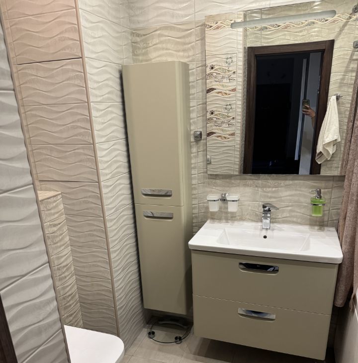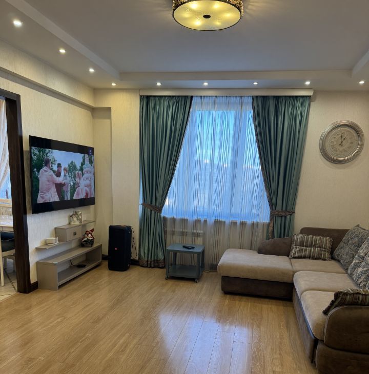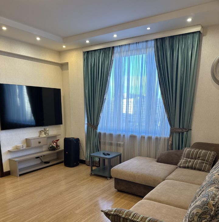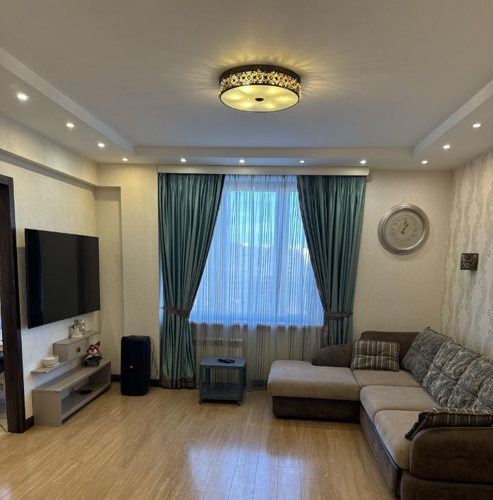 В квартире есть все необходимое для комфортного проживания: современная мебель на кухне и в комнатах, холодильник, посудомоечная машина, телевизор, стиральная машина. Планировка включает в себя один совмещенный и один отдельный санузел, в ванной установлена ванна. Также есть лоджия и балкон, окна выходят как на улицу, так и во двор, что добавляет свет и уют.