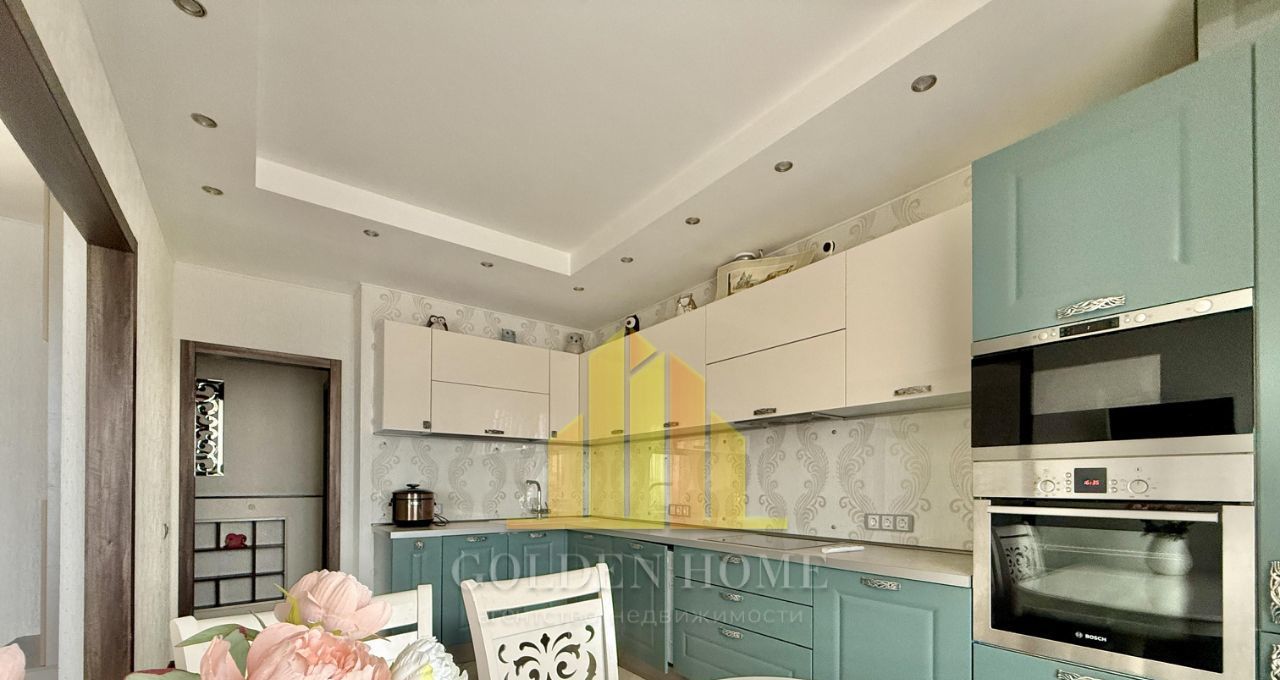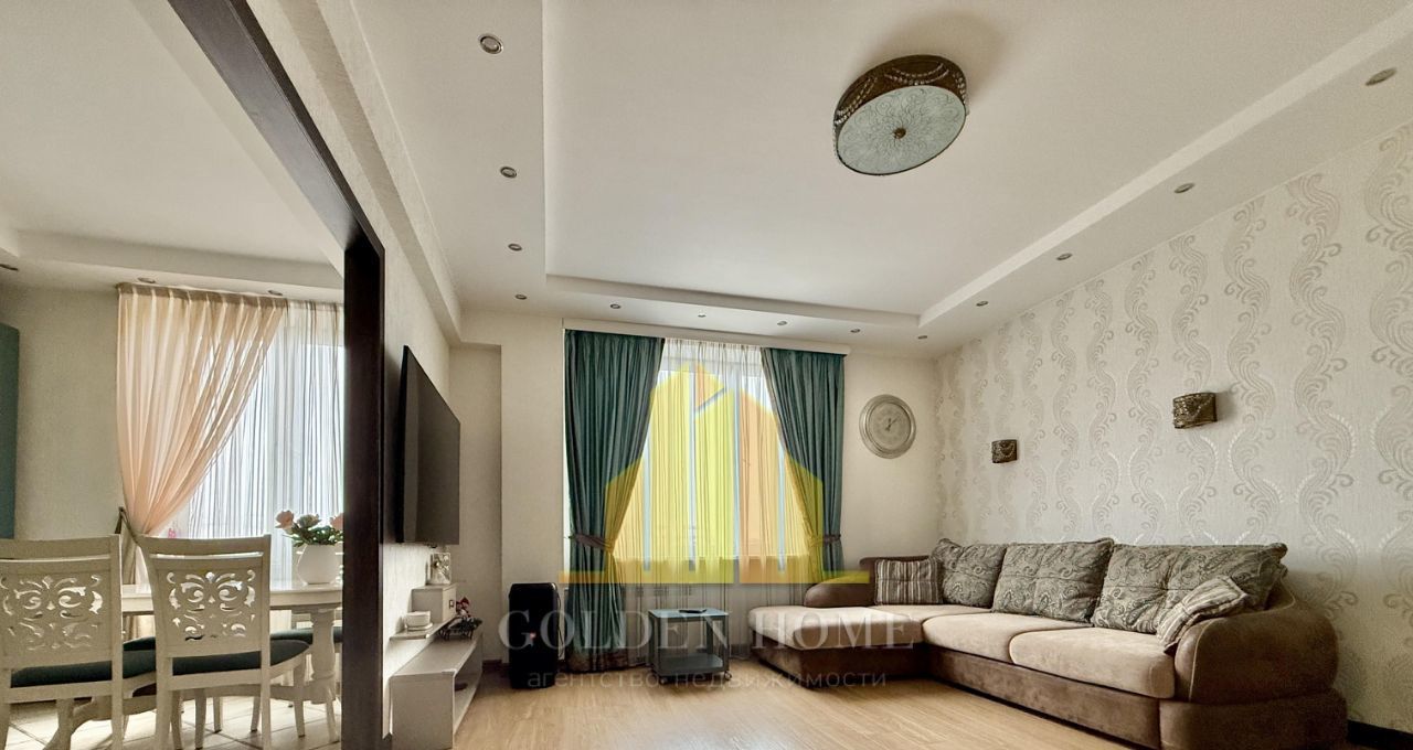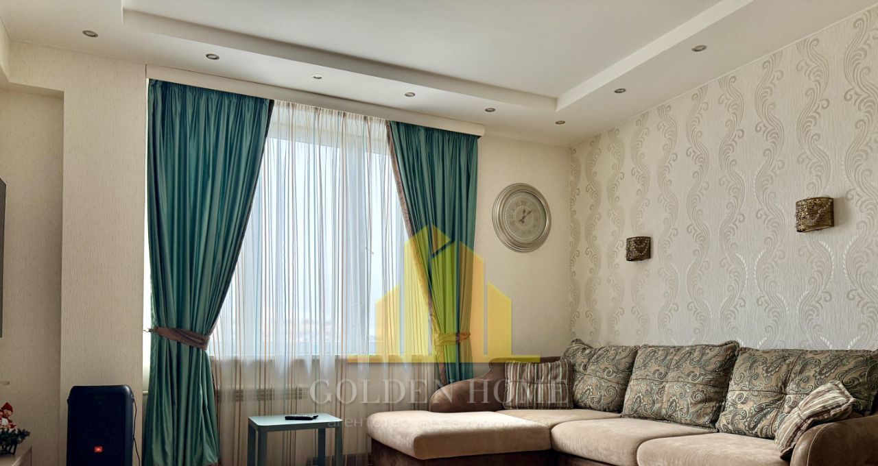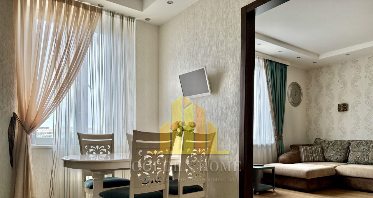 Общая площадь - 100 кв. м, высота потолков - 2,8 м, продуманная планировка делает пространство максимально комфортным для жизни. Интерьер выполнен в современном стиле с использованием качественных материалов. Квартира полностью меблирована и оснащена всей необходимой техникой: кухонный гарнитур, холодильник, посудомоечная машина, стиральная машина, плита, телевизор.