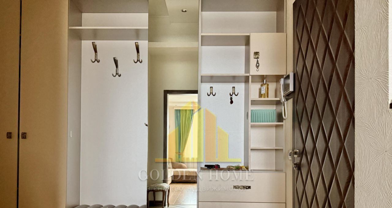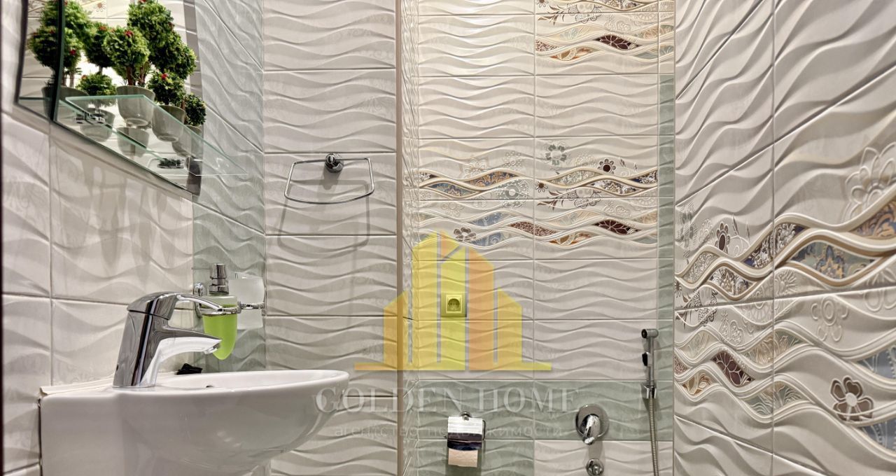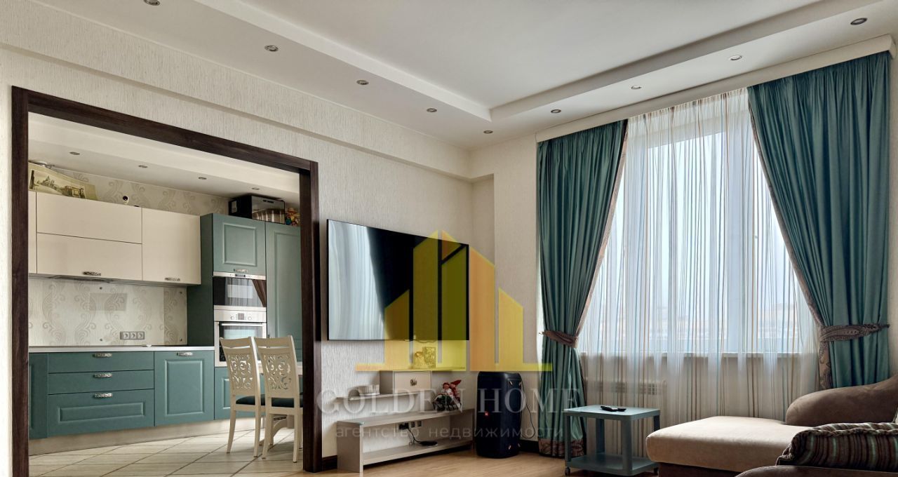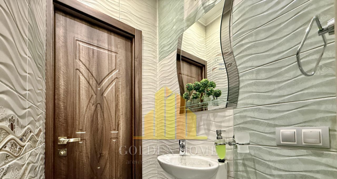 Общая площадь - 100 кв. м, высота потолков - 2,8 м, продуманная планировка делает пространство максимально комфортным для жизни. Интерьер выполнен в современном стиле с использованием качественных материалов. Квартира полностью меблирована и оснащена всей необходимой техникой: кухонный гарнитур, холодильник, посудомоечная машина, стиральная машина, плита, телевизор.