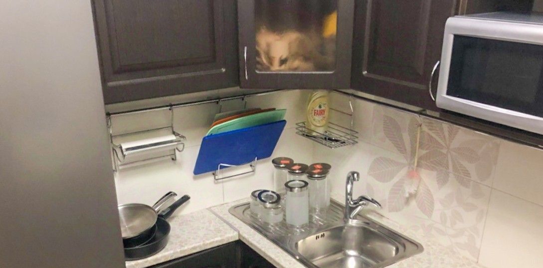 Коммунальные услуги и счётчики включены в арендную плату, жильцы оплачивают только интернет. Квартира оборудована кухонным гарнитуром, мебелью и бытовой техникой. Имеются: