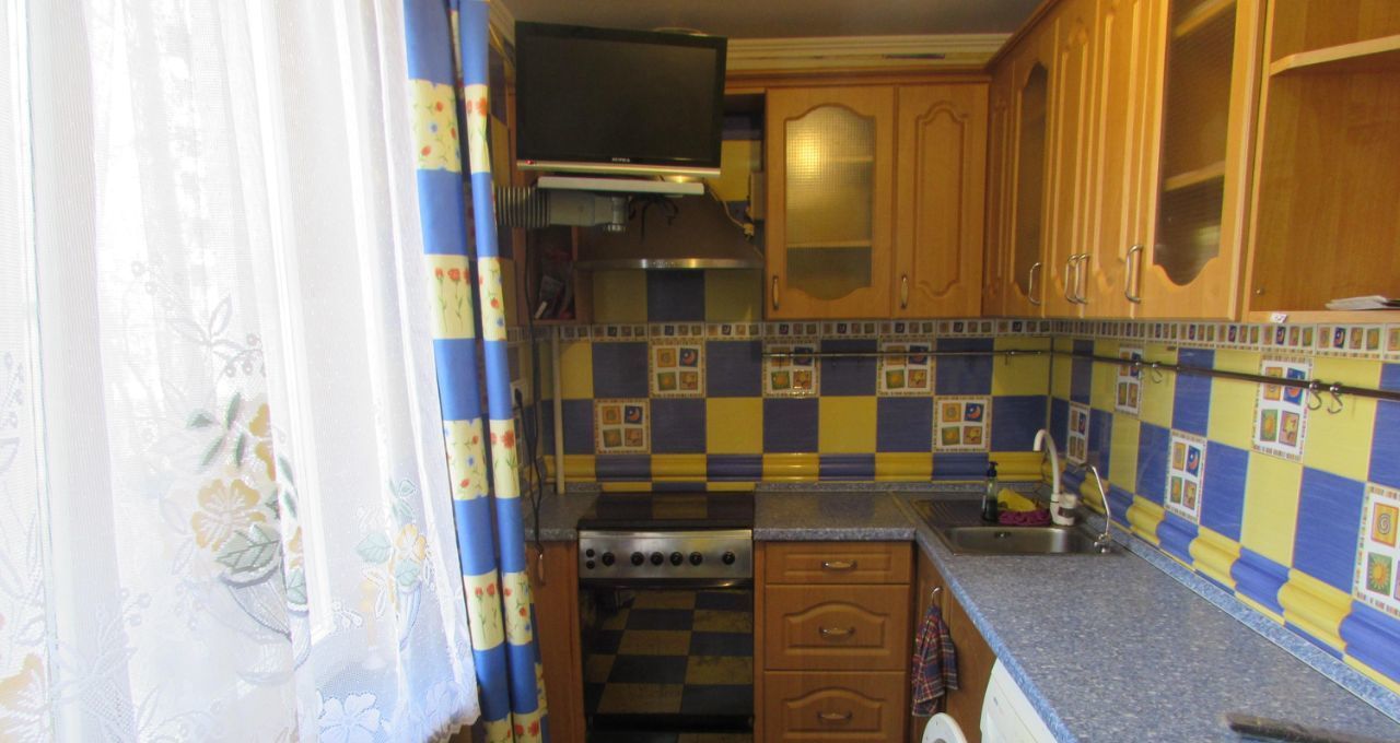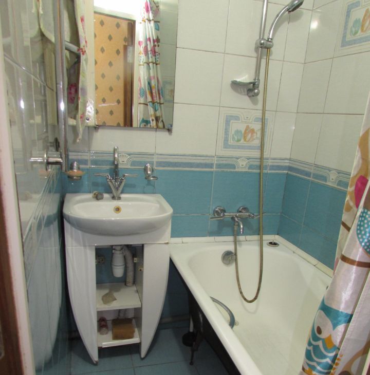 уютная .двухсторонняя окна --двор-двор ---и очень удобная для проживания квартира .позитивная кухня . французская плитка. плитка уложена -ванна .с\у. коридор .кухня от пола до потолка..