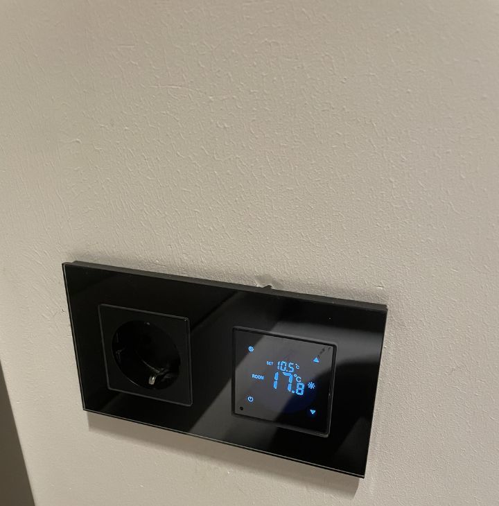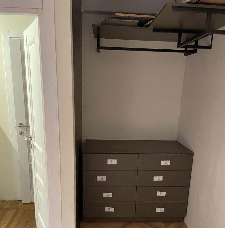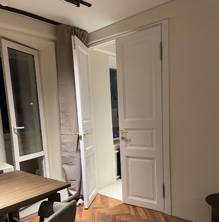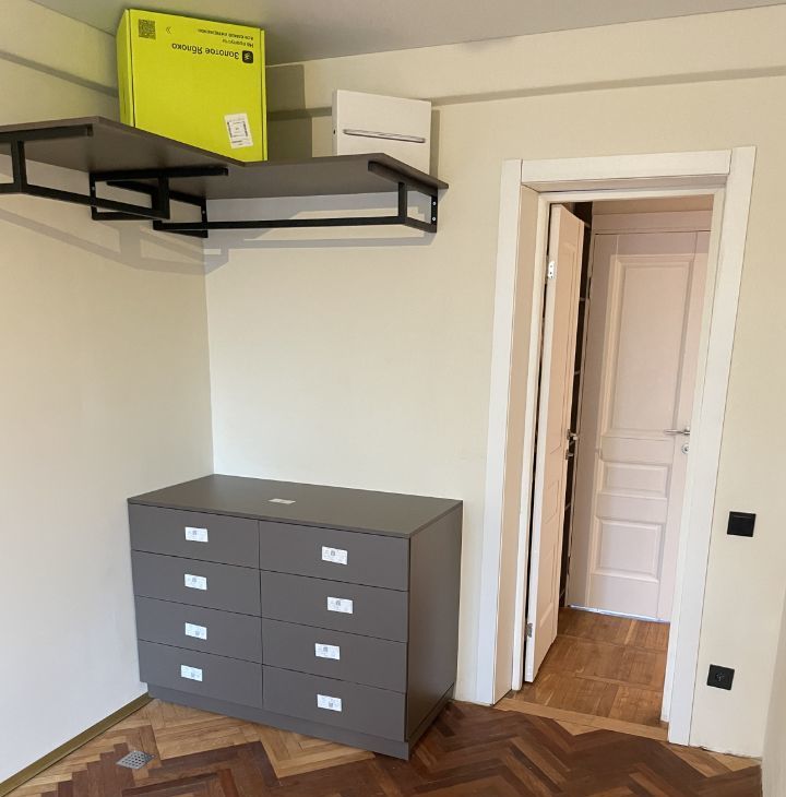 Ремонт делался с полным демонтажом и прокладкой новых инженерных систем, кроме пола-паркет проверили на пригодность и отреставрировали. Теплый пол в прихожей и санузле.