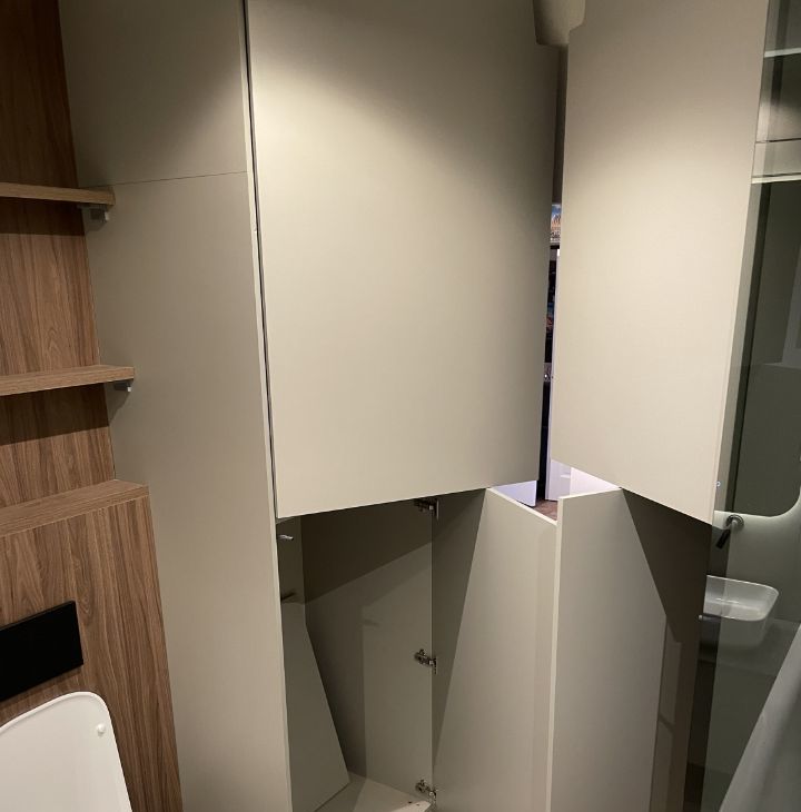 Балкон остекленный, центральная горячая вода, стиральная машина встраивается в шкаф в совмещенном санузле.