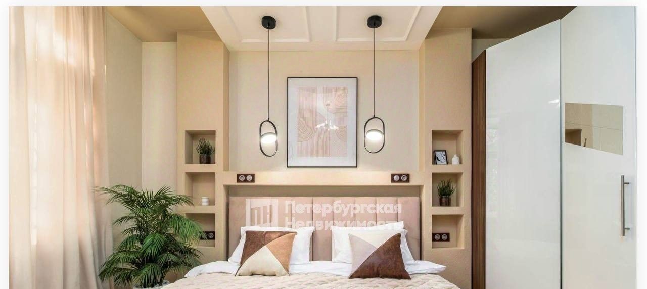 две спальни с комфортными кроватями и постельными принадлежностями, места хранения всё продумано до мелочей;