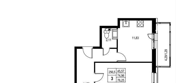 3-к кв. Санкт-Петербург просп. Ветеранов, 169к6 (76.25 м²)
