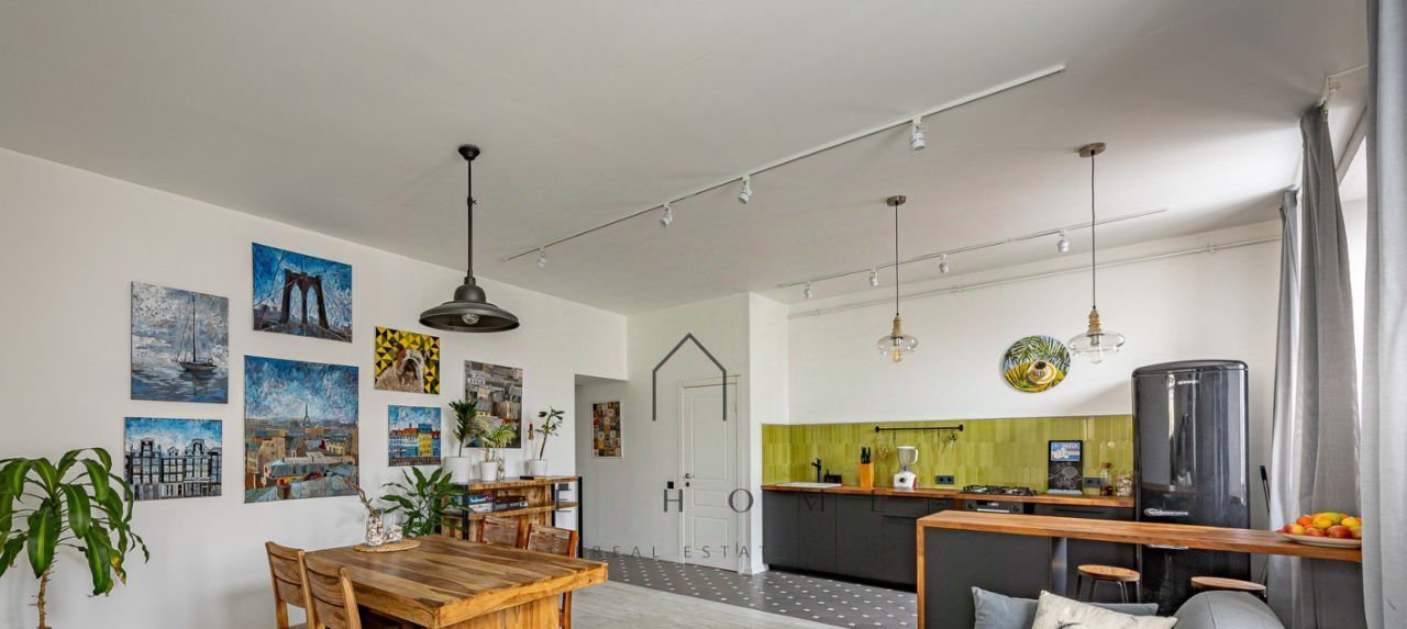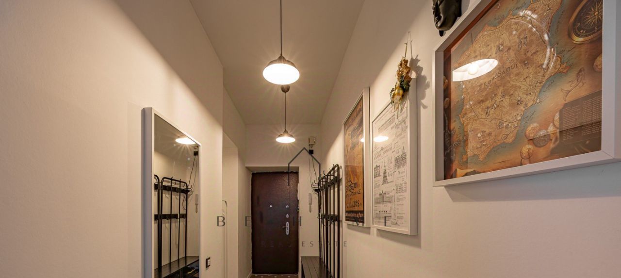 В квартире выполнен качественный ремонт. Просторная гостиная совмещенная с кухонной зоной, две изолированные комнаты: спальня с большой кроватью и гардеробной, детская комната, раздельная ванная комната. В квартире есть вся необходимая мебель и бытовая техника для комфортного проживания.