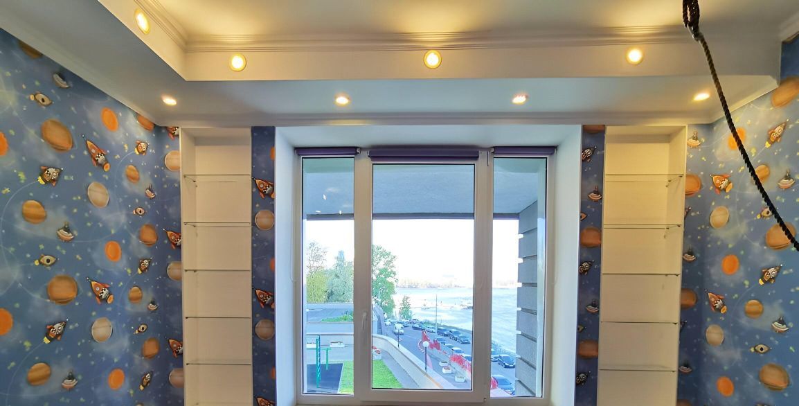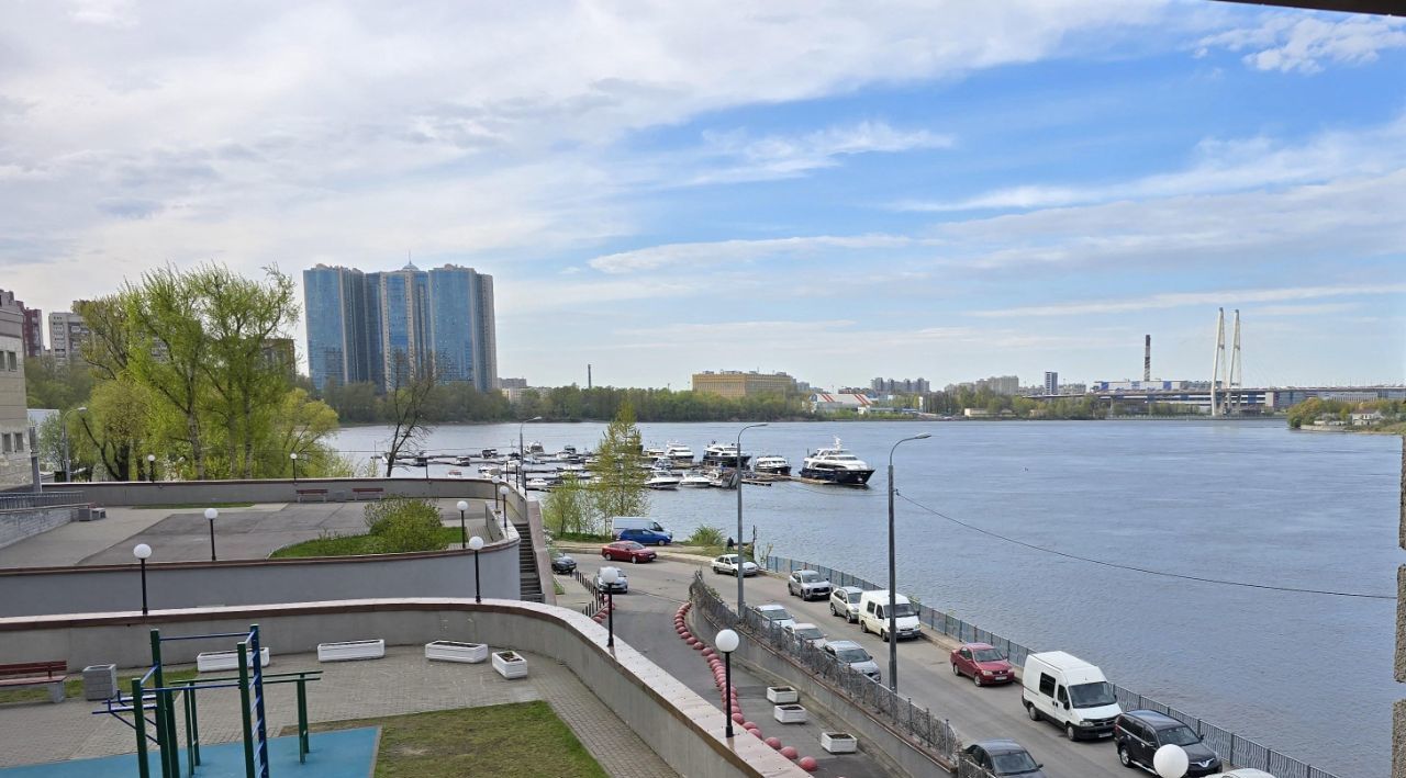 В раздельном санузле пол и стены облицованы плиткой, установлены два унитаза, две раковины и большая ванна. Также есть бойлер. Потолки многоуровневые, с точечными светильниками. Окна и эркер квартиры выходят на набережную реки Невы, Вантовый мост и внутренний двор. Эркер качественно утеплён и герметизирован, не продувается и не протекает, отделан термокрышками, а также установлен тёплый пол.