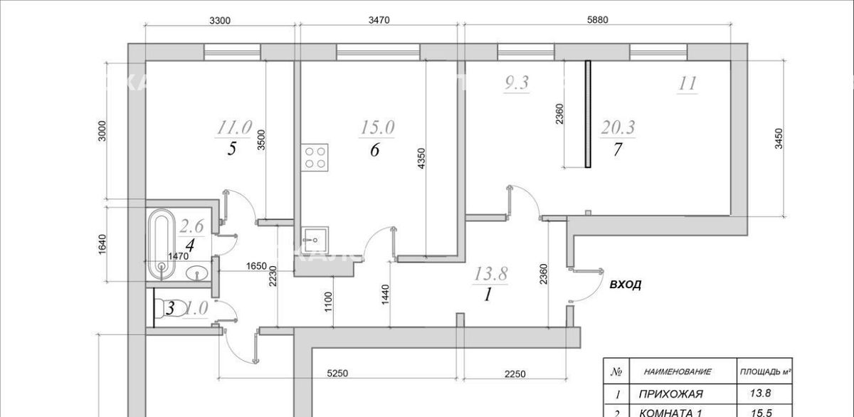 3-комнатная квартира: Санкт-Петербург, улица Ярослава Гашека, 13к3 (61.7 м²)