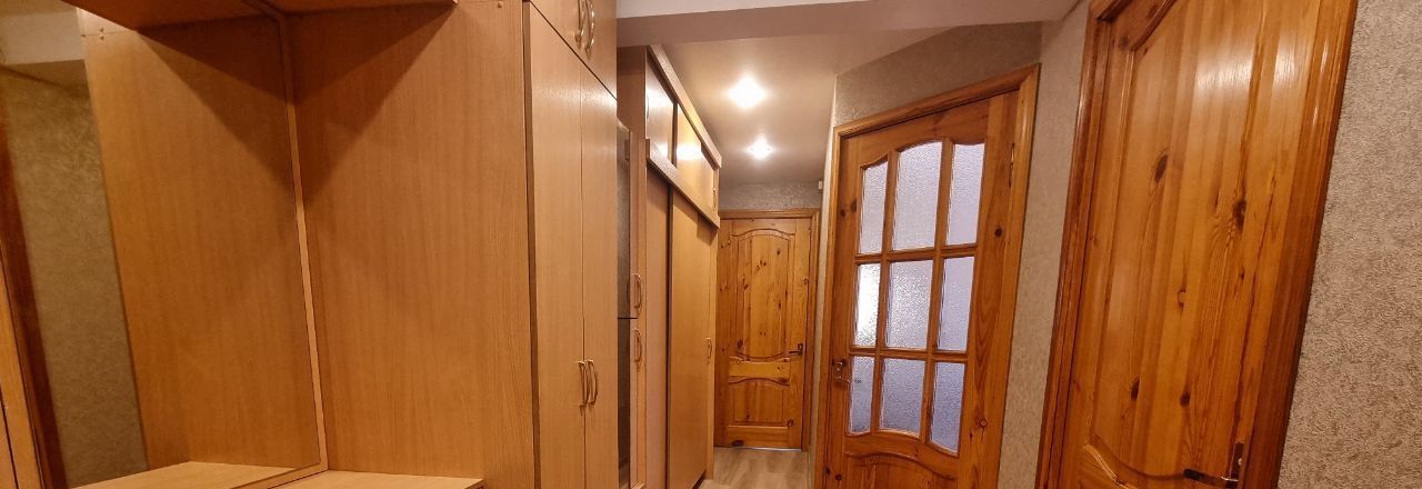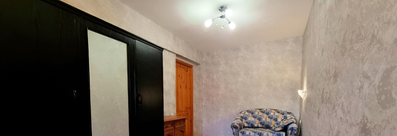 Комфортная перепланировка квартиры с тремя изолированными комнатами и кухней 8,3 м2, балконом и окнами, выходящими во двор. Есть все необходимое для проживания семьи, в том числе с детьми: три спальных места, встроенные шкафы, оборудованная кухня с газовой плитой, просторная прихожая, совмещенный санузел.