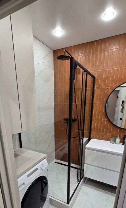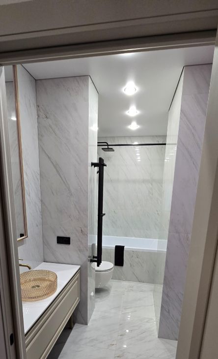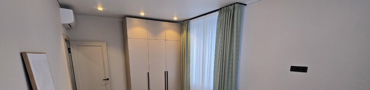 Квартира выполнена с дизайнерским ремонтом и полностью меблирована. В вашем распоряжении будет все необходимое: от кондиционера до телевизора. На кухне есть посудомоечная машина и холодильник. В квартире две ванные комнаты — одна с ванной, другая с душевой кабиной, поэтому утренние сборы будут проходить без спешки и очередей. Окна выходят во двор, обеспечивая тишину и спокойствие.