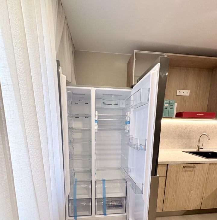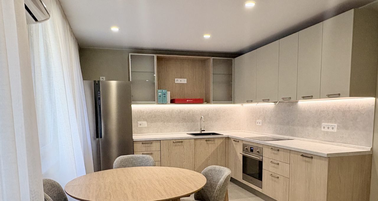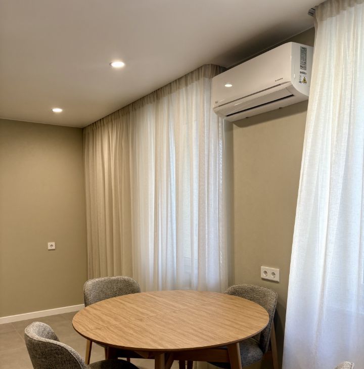 Особое внимание уделено вашему комфорту и здоровью: в квартире два современных совмещенных санузла (с ванной и душевой), установлены кондиционеры, на кухне гибридный смеситель и фильтр для чистой питьевой воды. Вся бытовая техника — абсолютно новая. Установлен видеодомофон.