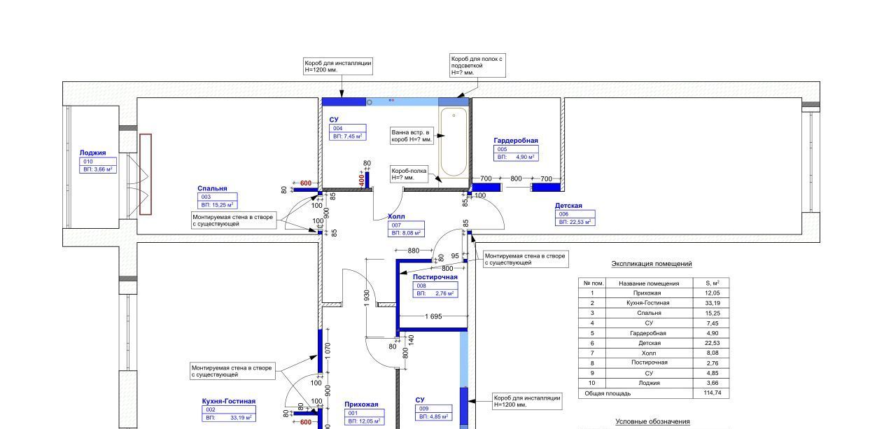Квартира общей площадью 112,8 кв. м с продуманной планировкой: две изолированные спальни (родительская и детская), просторная кухня-гостиная, гардеробная, два раздельных санузла, постирочная и утепленная лоджия, оборудованная под кабинет.