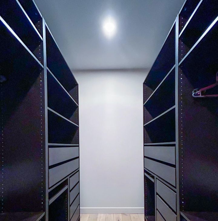 Гардеробная: 5 кв. м. с множеством секций для хранения.