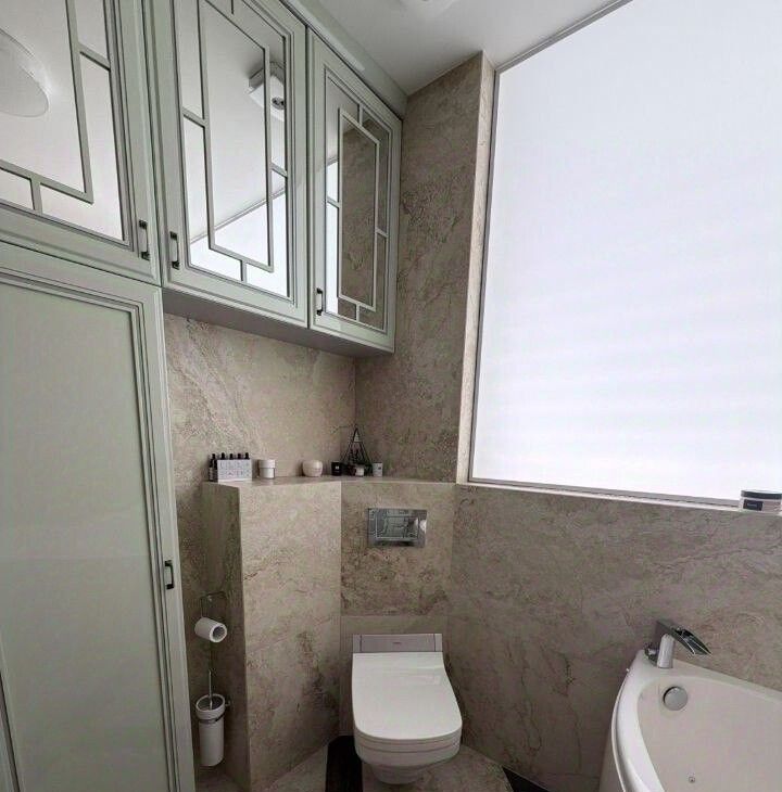 Главная особенность квартиры — наличие собственной джакузи, позволяющей расслабляться после рабочего дня, не выходя из дома. В квартире два совмещенных санузла, что добавляет бытового комфорта и исключает утренние очереди.