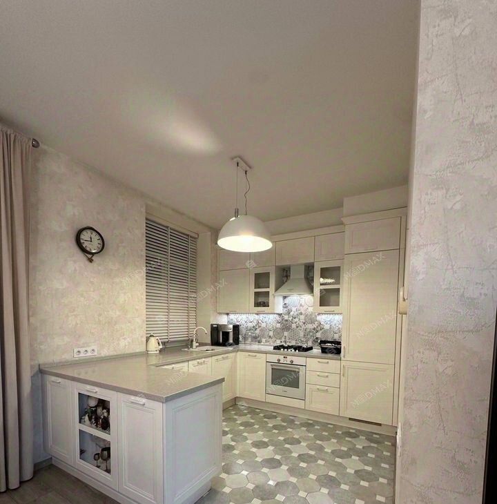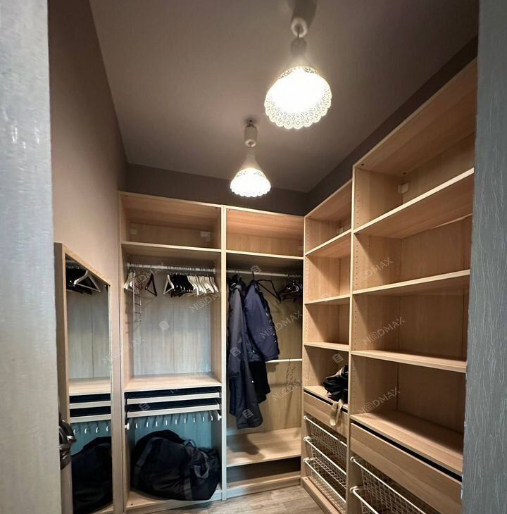 Квартира расположена на высоком первом этаже сталинского дома с высокими потолками 3 метра, что создаёт ощущение объёма и света. Грамотная планировка включает отдельную спальню, детскую комнату и просторную гостиную, а также большую гардеробную. Выполнена полная шумоизоляция, установлены тёплые полы и кондиционеры, что обеспечивает максимальный комфорт в любое время года.
