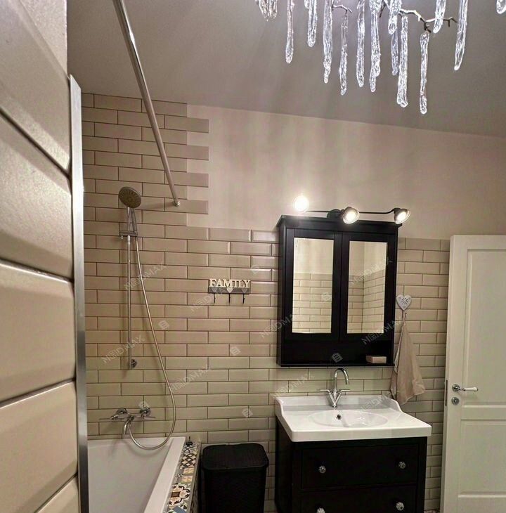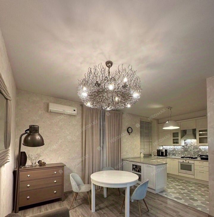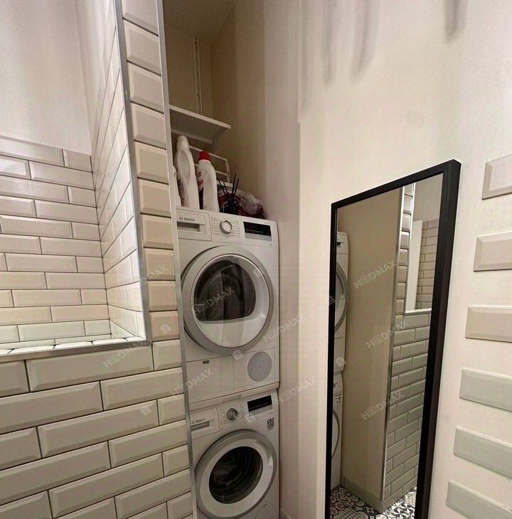 Квартира полностью укомплектована современной бытовой техникой: холодильник, микроволновая печь, посудомоечная машина, стиральная и сушильная машины, телевизор, кондиционеры. В ванной комнате — полноразмерная ванна и техническая душевая. Окна выходят на улицу и во двор, благодаря чему в квартире много естественного света и есть возможность эффективного проветривания.
