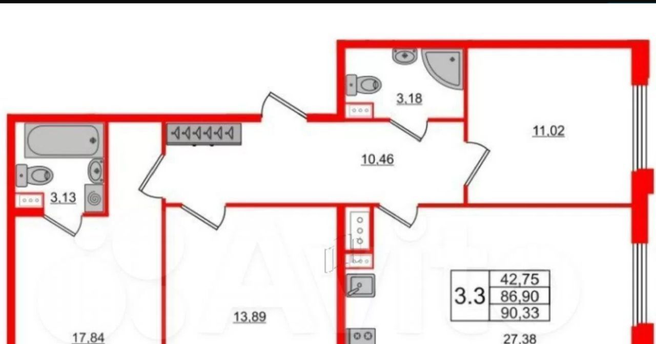3-к кв. Санкт-Петербург Светлановский просп., 14к1 (86.0 м²)