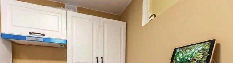 Гостиная-столовая с раскладывающимся диваном-трансформером, который легко станет угловым или спальным местом. Белая новая мебель.