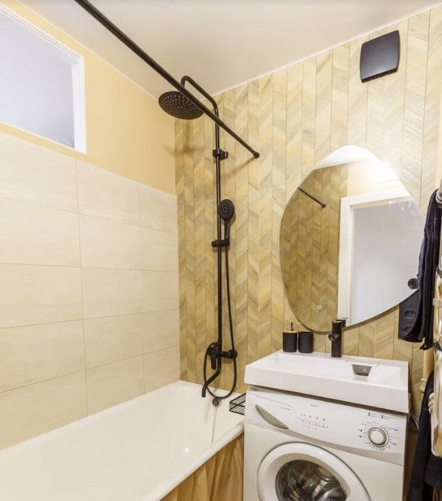 В ванной - машинка автомат, новые трубы, смесители, тропический душ и вентилятор с датчиком влажности,