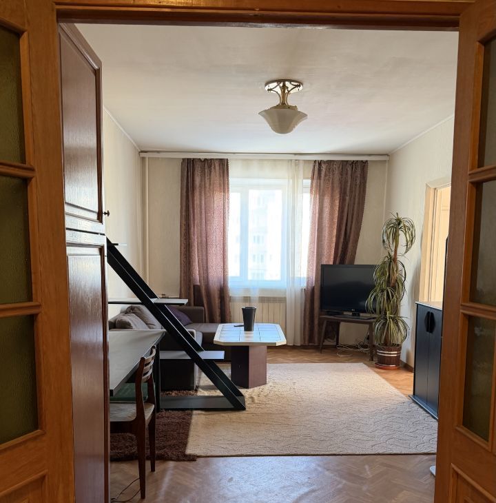 Квартира представляет из себя трехкомнатную планировку с проходной гостиной, раздельным санузлом, двумя изолированными спальнями и просторной кухней. Два балкона. Один балкон застеклен.