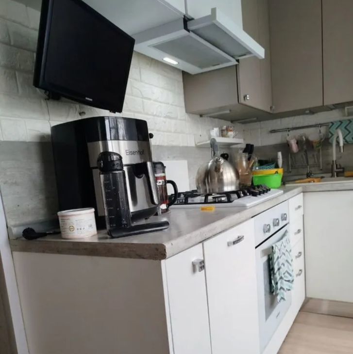 Оставлю мебель для кухни , варочную панель и вытяжку, а также шкаф с зеркальными раздвижными дверьми .