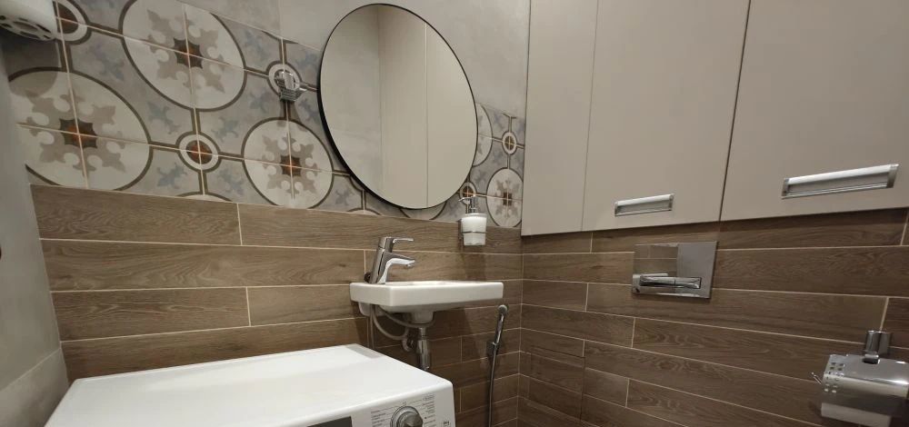 • в туалетной зоне установлена стиральная машина Haier с функцией сушки