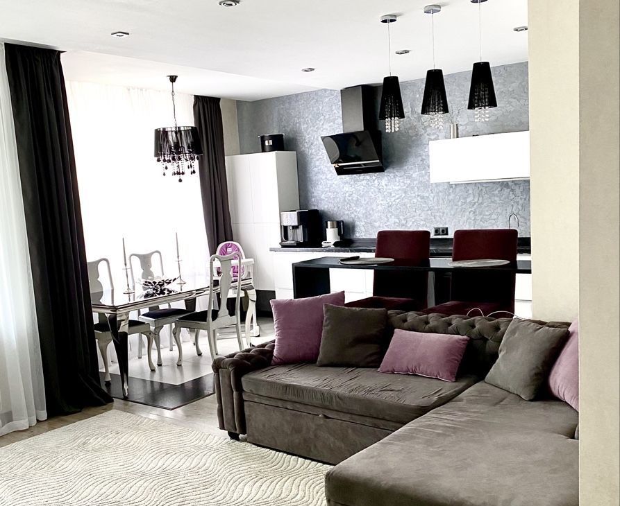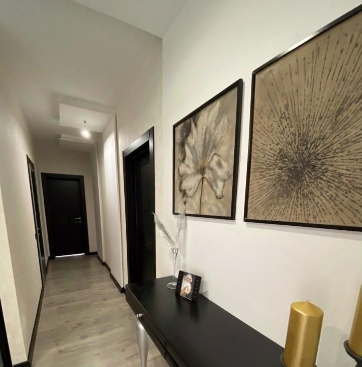Квартира состоит из просторной кухни- гостиной, спальни, детской комнаты (в данный момент фотообои с мульт персонажами демонтированы, просто однотонные стены), лоджия с 2-мя выходами , где есть диванчики с местами хранения, 2 санузла ( ванна/душ). Квартира полностью подготовлена и оснащена всем необходимым для комфортного проживания .