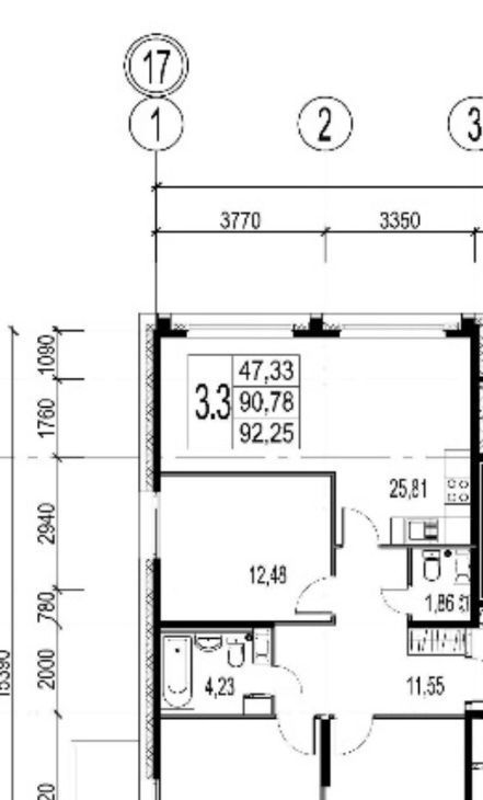 Комнаты: Три изолированные комнаты — 12,48 м², 18,79 м² (с выходом на балкон), 16,06 м².