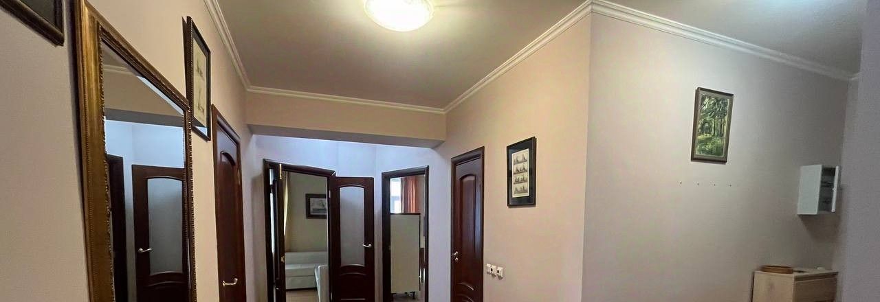 В квартире свободная планировка, три отдельных комнаты, высокие потолки (2.75) и евроремонт.