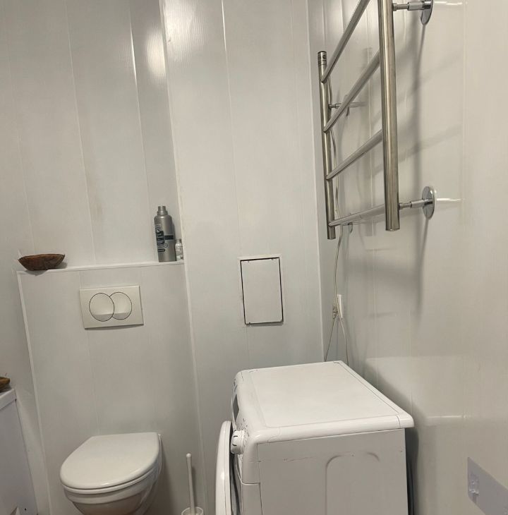 Ванная: стиральная машина, ванная, раковина, унитаз