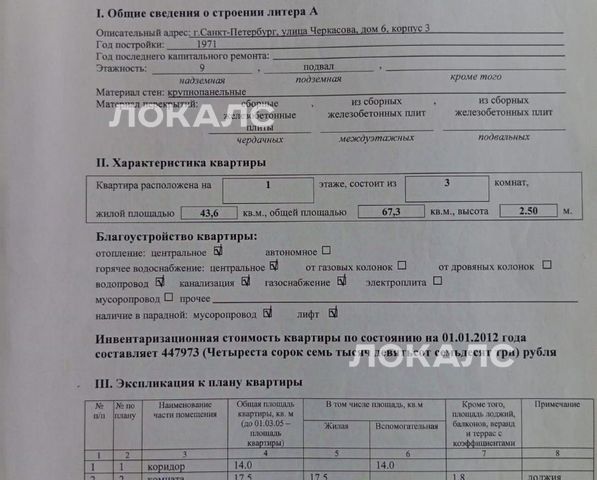 3-к кв. Санкт-Петербург ул. Черкасова, 6К3 (67.3 м²)