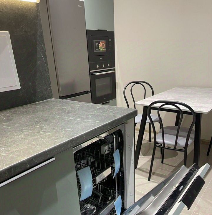 Квартира радует дизайнерским ремонтом, создающим атмосферу уюта и современности. В каждой комнате продумано все до мелочей: стильные мебельные решения и качественная техника, включая холодильник, посудомоечную и стиральную машины, а также телевизор. Планировка квартиры позволяет эффективно использовать пространство, а высота потолков 2,6 метра добавляет ощущение простора.