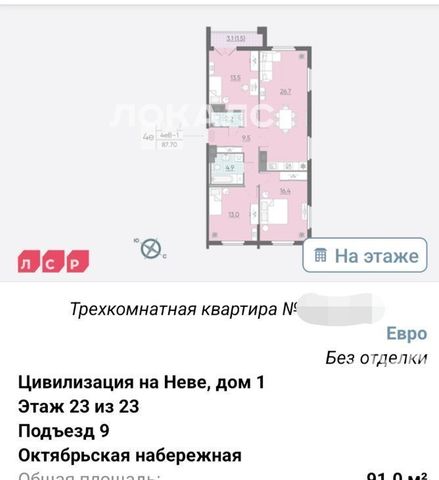 Здравствуйте уважаемые покупатели! Предлагаю к рассмотрению данную уникальную по планировке и площади (89.4 общая , фактическая приведённая 91м²), трёхкомнатная квартиру, которая находится в современном, новом ЖK Бизнес класса - Цивилизация на Невe ул. Дыбенко д.2.