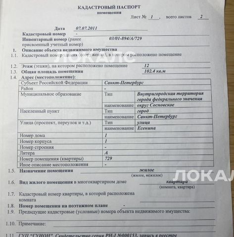 3-к кв. Санкт-Петербург ул. Есенина, 1к1 (110.0 м²)