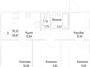 3-к кв. Санкт-Петербург ул. Ивинская, 19к2 (60.0 м²)