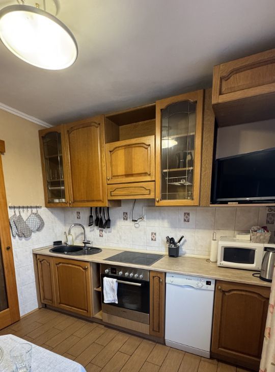 - Вся необходимая техника: стиральная машина, холодильник, духовой шкаф, варочная панель, посудомоечная машина, чайник, телевизоры.