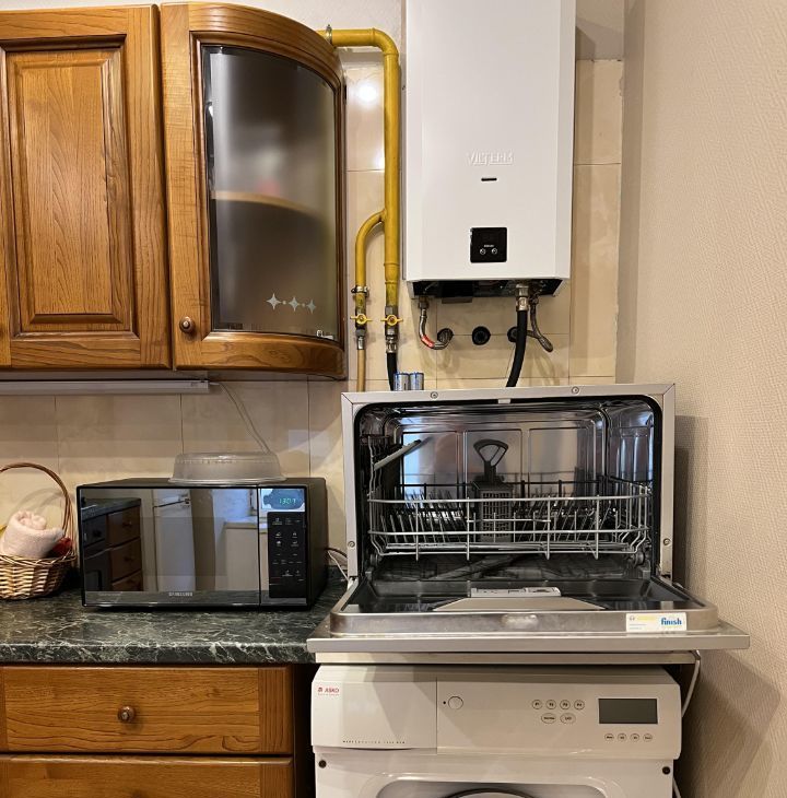 Техника в квартире: стиральная машина, посудомоечная машина, микроволновая печь, варочная поверхность (4-х комфорчная), духовой шкаф, газовый котел.